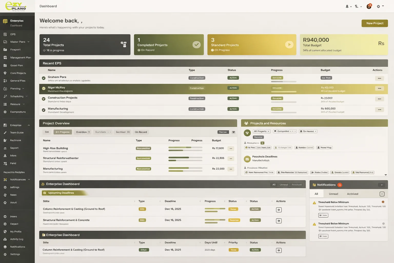 With AI-powered scheduling, real-time insights, WhatsApp alerts, and seamless integration across all EZYPRO modules, it completely transforms the way teams manage timelines, resources, and daily tasks. No matter if you are handling projects at a smaller level or handling some major developments on a large scale, EZY-PLANO brings clarity, accuracy, and automation to every phase, helping your business grow with smart technology.