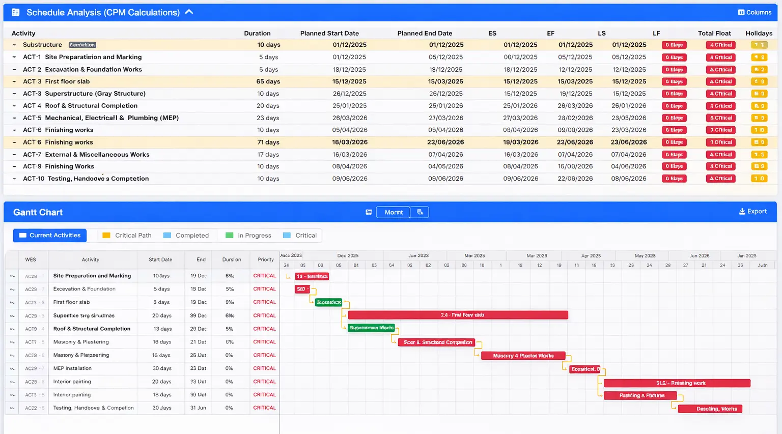 EZY-PLANO intelligently analyzes every activity, baseline, and progress update enabling smarter timeline optimization, and confident on-time delivery.